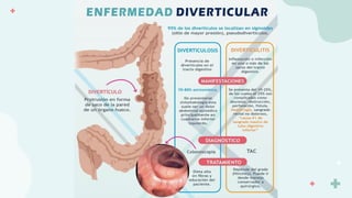 Este documento resume varias patologías del intestino delgado, ano-recto y colon. Se describe el divertículo de Meckel, su estructura, presentación clínica, diagnóstico y tratamiento. También se discute la tuberculosis intestinal, sus definiciones, etiología, diagnóstico diferencial y complicaciones. Se mencionan los tumores benignos y malignos más comunes del intestino delgado, así como su diagnóstico y tratamiento. La obstrucción intestinal se define y se explican sus etiologías, epidemiología, clínica, diagnóst