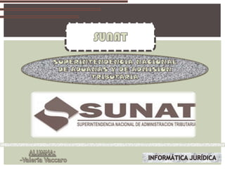 La SUNAT es un organismo técnico especializado adscrito al Ministerio de Economía y Finanzas que goza de autonomía funcional, técnica, económica, financiera, presupuestal y administrativa. Tiene como función recaudar los tributos internos y aduaneros, así como aplicar las normas tributarias. La SUNAT ha implementado diversos sistemas informáticos para facilitar trámites como declaraciones, pagos y registros de manera digital a través de su portal web, con el fin de agilizar los procesos y brindar servicios electr