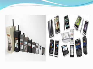 El documento describe la historia y evolución del teléfono celular. Explica que el primer teléfono celular fue inventado por Martin Cooper en 1973 mientras trabajaba para Motorola. Aunque tuvo un retraso de 10 años en su comercialización, este dispositivo revolucionó la comunicación al permitir llamadas sin cables. Desde entonces, los teléfonos celulares han adquirido más funciones como cámaras, internet y aplicaciones, convirtiéndose en dispositivos multifuncionales conocidos como smartphones.
