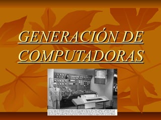 Las generaciones de computadoras se dividen por los periodos en la historia de las computadoras. La primera generación utilizaba válvulas electrónicas y se programaba en lenguaje de máquina. La segunda generación reemplazó las válvulas con transistores y se comunicaba mediante lenguajes de alto nivel. La tercera generación introdujo los circuitos integrados. La cuarta generación vio el surgimiento de las computadoras personales debido a la microminiaturización. La quinta generación se centra en la inteligencia artificial.