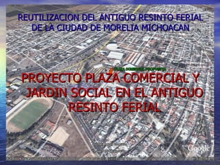 El documento describe un proyecto para reutilizar el antiguo recinto ferial de la ciudad de Morelia, Michoacán como una plaza comercial y jardín social. Actualmente el área alberga familias de clase media y baja y cuenta con comercio informal y recreación. Según el dictamen de uso de suelo, la zona está destinada a uso comercial. Las zonas aledañas tienen una cultura de pueblo con casas sin diseño uniforme y un estilo de vida industrial y tranquilo.