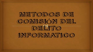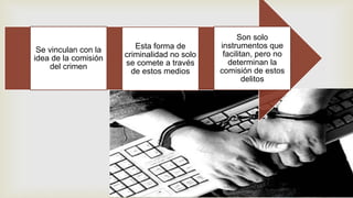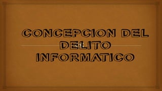 El documento presenta una definición de los delitos informáticos según el Convenio de Ciberdelincuencia del Consejo de Europa, dividiéndolos en cuatro categorías: delitos contra la confidencialidad, integridad y disponibilidad de datos y sistemas; delitos relacionados con infracciones a la propiedad intelectual; delitos relacionados al contenido; y otros delitos informáticos. Se describen las características de estos delitos como su dificultad para ser demostrados, y que pueden ser cometidos de forma rápida y sin