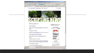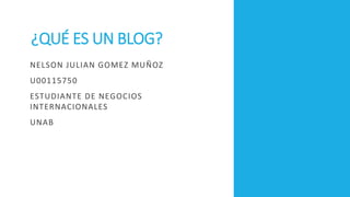 Un blog es un diario digital donde se publica contenido de forma cronológica. El primer blog data de 1994 y fue creado por Justin Hall, aunque muchos consideran que el primero moderno fue el de Dave Winer en 1997. La palabra "blog" proviene de la contracción de "web log" acuñada en 1997, y actualmente un blog es más que un diario personal, sino una plataforma social multimedia e interactiva que permite la expresión y participación de su autor y lectores.