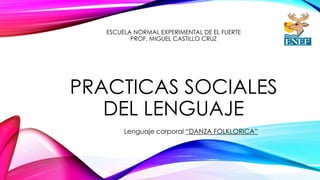 Este documento describe la danza folclórica como una forma de lenguaje corporal que permite expresar emociones y sentimientos de manera libre. Bailar folklor también genera convivencia entre grupos de diferentes lugares y ofrece la oportunidad de participar en eventos nacionales e internacionales. La pasión por la danza es lo que motiva a los bailarines a continuar practicando este arte.