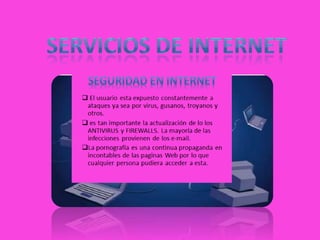 La Corporación de Internet para los Nombres y los Números Asignados (ICANN) coordina la asignación de identificadores únicos en Internet como los nombres de dominio, y un sistema de nombres global unificado es esencial para el funcionamiento de Internet. Los usuarios están expuestos a ataques como virus, gusanos y troyanos a través del correo electrónico y las páginas web, por lo que es importante mantener actualizados los antivirus y firewalls.