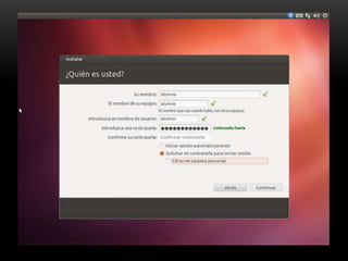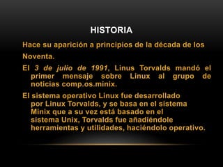 Este documento proporciona información sobre Linux y sus aplicaciones. Explica el origen y características de Linux, así como su mascota Tux. Además, describe algunas aplicaciones populares como Firefox y Opera, y los grupos de usuarios en Linux. Por último, menciona versiones actuales y futuras de distribuciones como Ubuntu que estarán disponibles en dispositivos móviles y de escritorio.
