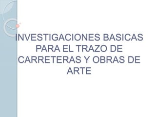Las vías terrestres son infraestructura necesaria para el progreso de los países. La construcción de carreteras requiere considerar factores como la topografía, geología y necesidades sociales y económicas. Los estudios geológicos son importantes para reducir costos de construcción y mejorar la calidad técnica. La exploración de rutas para carreteras involucra reconocimiento aéreo y de campo para seleccionar la ruta más favorable, seguido de un análisis geológico exhaustivo para conocer las condiciones