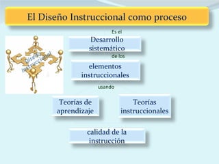 Este documento describe el proceso de diseño instruccional como un método sistemático para desarrollar elementos educativos utilizando teorías de aprendizaje e instrucción. Explica los componentes clave de la planeación educativa como objetivos, métodos de enseñanza, materiales y evaluaciones, y propone un modelo de 14 pasos para el diseño efectivo de cursos.