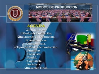 A lo largo de la evolución humana se han creado diferentes modos de producción como forma de subsistencia y proyección social, económica y política. Estos incluyen el modo primitivo basado en la recolección, el modo esclavista con la explotación del hombre por el hombre y propiedad privada, el modo feudal con libertad de los esclavos y nuevas clases sociales, el modo capitalista con comercio global y relaciones mercantiles, y el modo socialista con fuerza moral, propiedad comunal e igualdad social.
