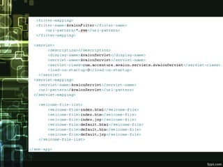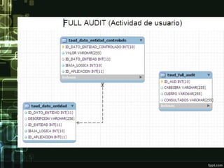 Este documento describe Avalon, una solución de auditoría y gestión de la seguridad. Explica la arquitectura de Avalon, incluyendo su aplicación backoffice de configuración, el formato de mensajes intercambiados, el uso de JMS para la persistencia asíncrona de datos y el entorno de desarrollo basado en Eclipse, MySQL, JSF y otros frameworks. También cubre la generación de informes PDF usando JasperReports y la configuración de trazas con Log4j.
