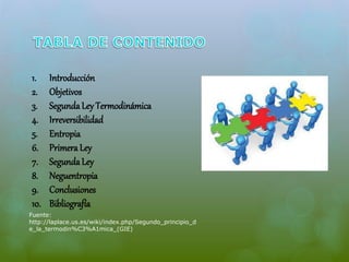 Este documento trata sobre la segunda ley de la termodinámica. Explica conceptos clave como entropía, irreversibilidad y estados de equilibrio. También analiza cómo la segunda ley establece restricciones en la transferencia de energía y la imposibilidad de convertir completamente la energía sin pérdidas.