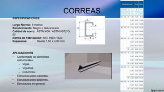 El documento detalla diversas especificaciones y aplicaciones de perfiles estructurales y laminados, incluyendo vigas, columnas, tuberías y tablestacas, especificando sus dimensiones, recubrimientos, normas de calidad y usos en construcción. Se incluye información sobre productos como vigas IPE, UPN, y tubos para estructuras metálicas, así como paneles especiales y tuberías para sistemas de incendios. Además, se menciona la adaptabilidad y los beneficios económicos de los materiales en diferentes aplicaciones industriales y de construcción.