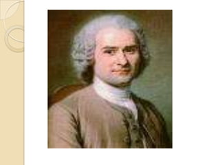 El documento resume la vida y obra del filósofo Jean-Jacques Rousseau. Habla de sus libros más importantes como El Contrato Social y Emilio o De la educación, en los cuales trató temas como la libertad, la igualdad, la educación y la corrupción de la sociedad. También describe su visión filosófica del individuo y el estado de derecho, así como su legado en los campos de la política, la desigualdad social y la formación del hombre.