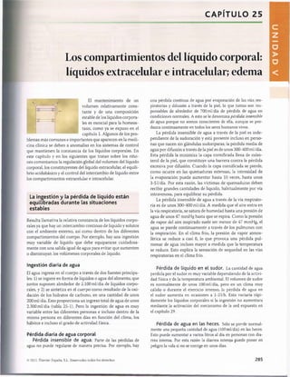 El documento describe los principales compartimientos de líquido en el cuerpo humano, incluyendo el líquido intracelular, el líquido extracelular y el volumen sanguíneo. Explica que el líquido corporal total se distribuye principalmente entre el líquido intracelular y el líquido extracelular. Además, detalla los mecanismos por los cuales se mantiene un equilibrio entre la ingesta y pérdida de líquidos a través de la regulación renal.