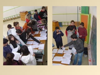 El documento propone ideas para animar a la lectura en un grupo de trabajo como introducir aspectos curiosos en los apuntes, usar frases célebres y viñetas cómicas con texto breve. Los objetivos son acercar diversos textos a los estudiantes como cuentos, relatos y fragmentos literarios para despertar su curiosidad y representarlos mediante mímica o diálogos cortos. Se desarrollará buscando textos apropiados para su lectura e interpretación.