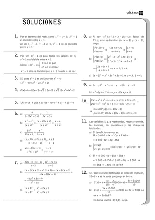 2. Se piden hallar si ciertos polinomios son divisibles, expresar polinomios en forma de producto de factores, realizar operaciones con fracciones algebraicas, y resolver problemas que involucran la producción de una empresa.