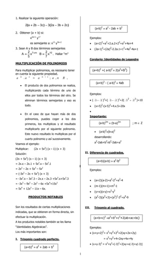 2) Existen identidades algebraicas para productos notables como el cuadrado de un binomio, la diferencia de cuadrados, y el cubo de un binomio.