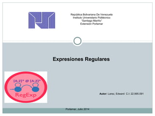 Una expresión regular describe una o más cadenas que deben coincidir al buscar en un texto. Puede usarse para buscar patrones, reemplazar texto o extraer subcadenas. Las expresiones se componen de operadores, operandos y paréntesis. Existen notaciones infija, posfija y prefija para expresar expresiones. Las pilas se usan para descomponer expresiones en operandos y operadores y volver a componerlas de forma recursiva.