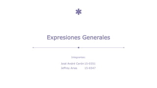 El documento presenta información sobre expresiones regulares y autómatas finitos. Explica las operaciones de álgebra de conjuntos que se pueden realizar con autómatas, como unión, intersección y diferencia. También define formalmente las expresiones regulares y su significado, mostrando cómo representan lenguajes regulares. Finalmente, discute la equivalencia entre expresiones regulares y autómatas finitos.