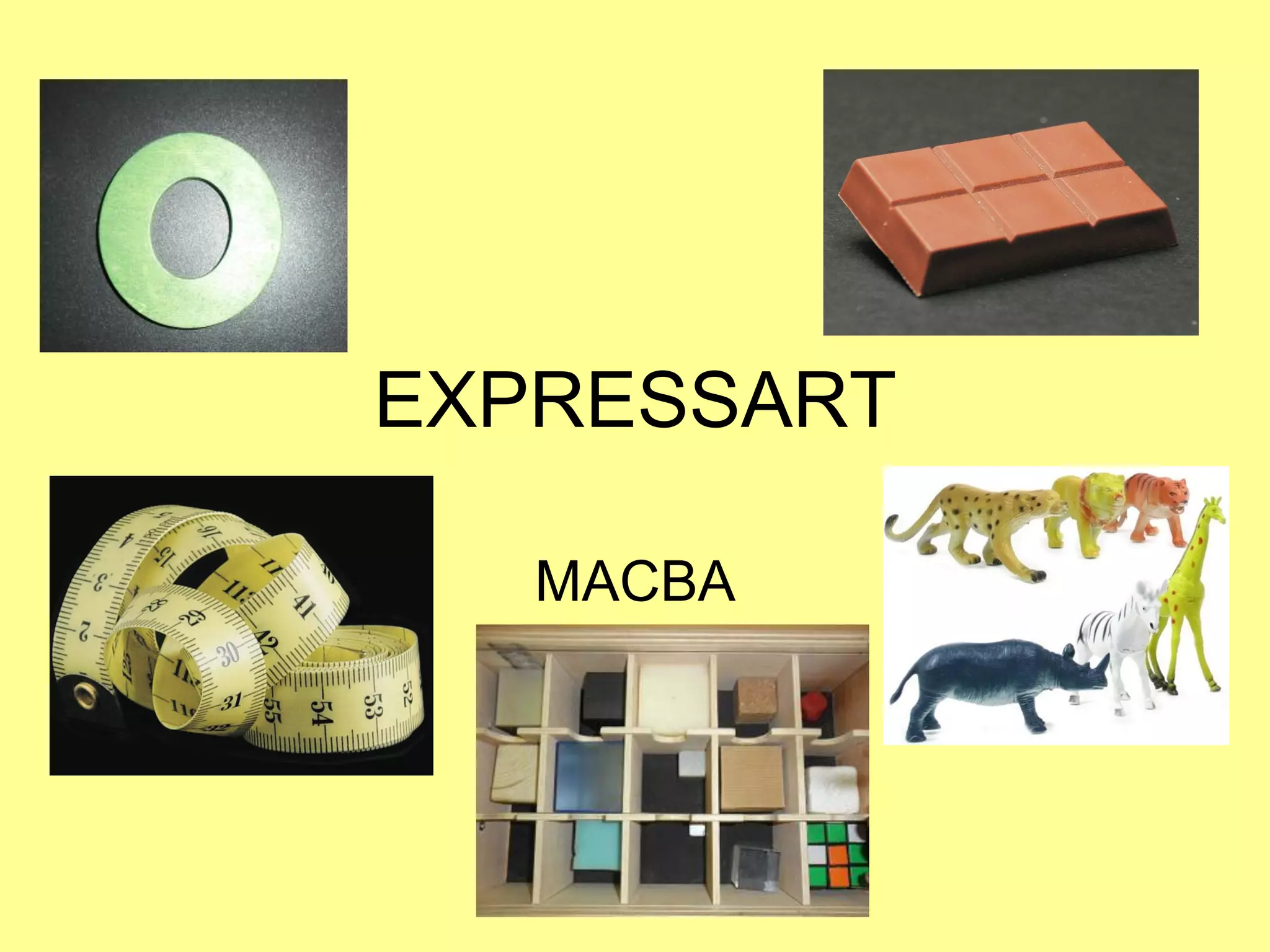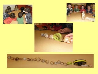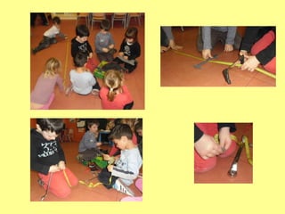 Este documento describe una actividad de arte realizada por niños en la que exploran y experimentan con varios objetos como una cinta métrica, chocolate y cubos. Los niños observan los objetos, imaginan cómo podrían encontrarse en un museo y cómo podrían transformarlos en obras de arte. Luego crean composiciones y presentaciones usando los objetos, y también visitan un museo para ver obras de arte hechas con materiales similares.