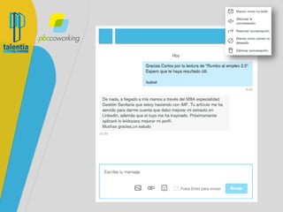 El documento presenta estrategias para maximizar el uso de LinkedIn, enfocándose en la creación y gestión de una red de contactos, la interacción en grupos y debates, y la publicación de contenido en la plataforma. Se destacan las mejores prácticas para personalizar invitaciones, manejar mensajes, y utilizar herramientas como Pulse y SlideShare para aumentar la visibilidad profesional. Además, se ofrecen consejos sobre qué tipo de contenido compartir y evitar en grupos de LinkedIn.