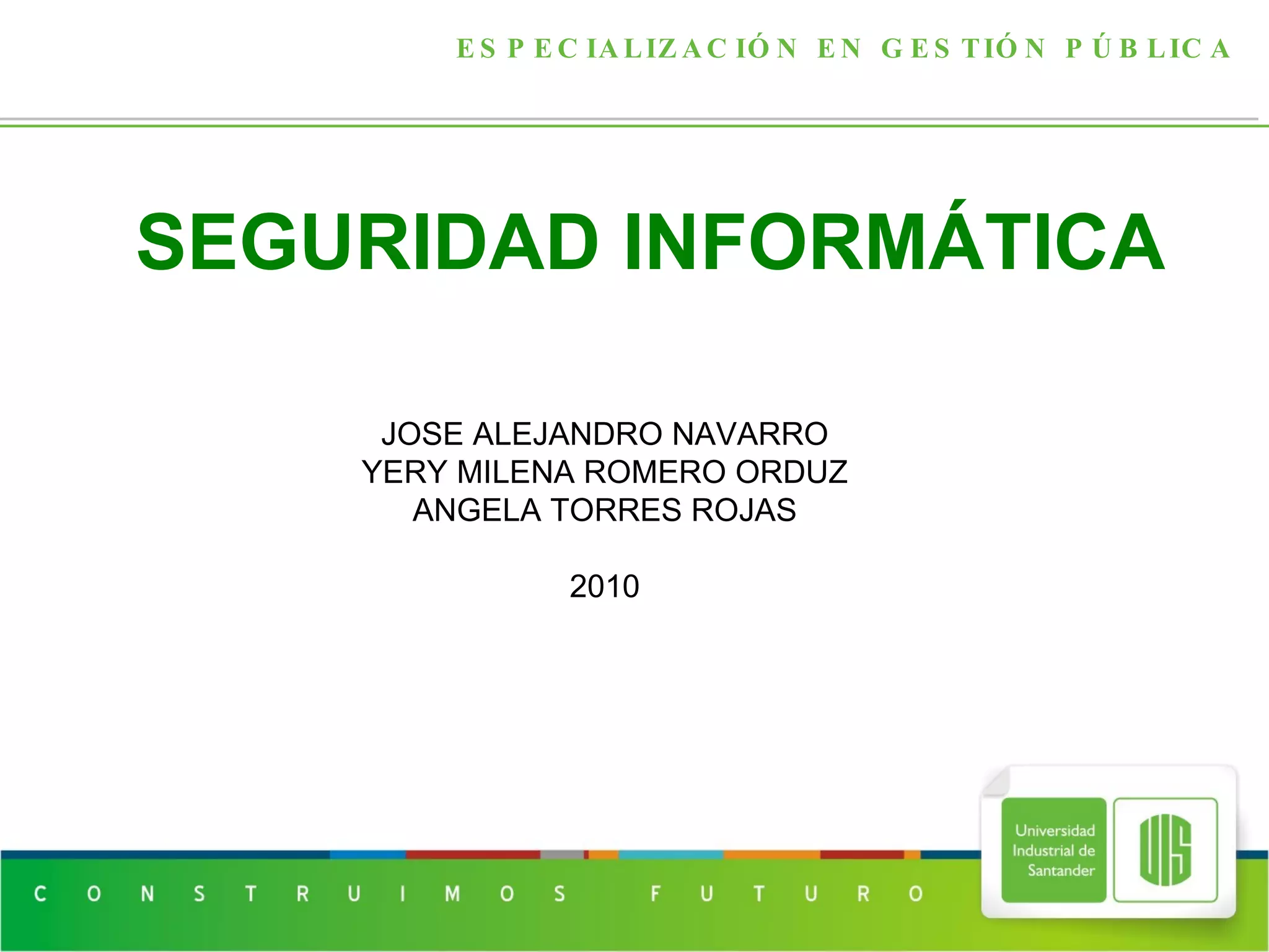 La seguridad informática en el sector público colombiano busca garantizar el acceso a la información pública y protegerla de amenazas. Sin embargo, la cultura del secretismo entre funcionarios y falta de políticas dificultan estos objetivos. Las universidades también deben asegurar la protección de datos e implementar estrategias de seguridad informática.