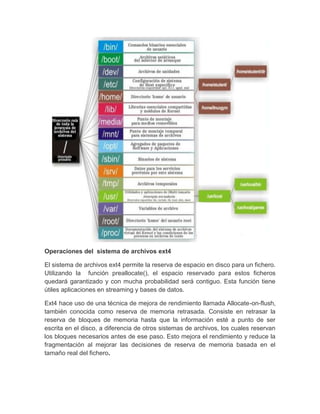 Ext4 es el sistema de archivos más avanzado de Linux. Ofrece mayor capacidad de almacenamiento, mejor rendimiento y fiabilidad en comparación con versiones anteriores como Ext3. Ext4 optimiza la asignación de espacio en disco para reducir la fragmentación y mejorar la velocidad de lectura/escritura. Se ha convertido en el sistema de archivos predeterminado de la mayoría de distribuciones Linux modernas.