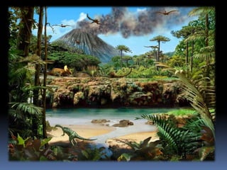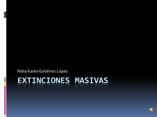 El documento describe seis extinciones masivas que han ocurrido a lo largo de la historia de la Tierra. La primera extinción ocurrió hace aproximadamente 445 millones de años durante el periodo Ordovícico-Silúrico. La causa de esta extinción fue un cambio drástico en los hábitats debido a la bajada del nivel del mar. Otras extinciones masivas descritas son la del Devónico hace 360-370 millones de años, la del Pérmico-Triásico hace aproximadamente 252 millones de años, la del Tri