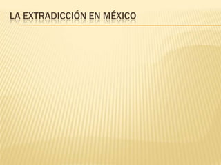 1) La extradición es un proceso por el cual un Estado entrega a una persona que se encuentra en su territorio a las autoridades de otro Estado para ser juzgada por delitos cometidos en este. 2) La extradición requiere de un acuerdo jurídico y político entre los Estados involucrados. 3) En México, la extradición se rige por la Constitución, la Ley de Extradición Internacional y tratados internacionales bilaterales.