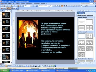 Este documento proporciona instrucciones paso a paso para extraer el sonido de una presentación PowerPoint (.pps). Explica que primero se debe abrir y guardar la presentación en la computadora, luego guardarla como página web, lo que creará una carpeta donde se encontrará el archivo de sonido extraído que podrá escucharse y guardarse. También menciona que para PowerPoint 2007 el proceso es similar, guardando la presentación como página web después de abrirla.