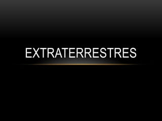 El documento habla sobre la definición de extraterrestres y seres de otros planetas. Explica que un extraterrestre es cualquier forma de vida que provenga de un lugar diferente a la Tierra, aunque comúnmente se refiere a seres inteligentes de otros planetas. También discute las diferencias entre los términos "extraterrestre" y "alienígena" y los diferentes enfoques de la ufología científica y no científica sobre la existencia de vida extraterrestre. Finalmente, analiza las representaciones comunes de alienígenas en