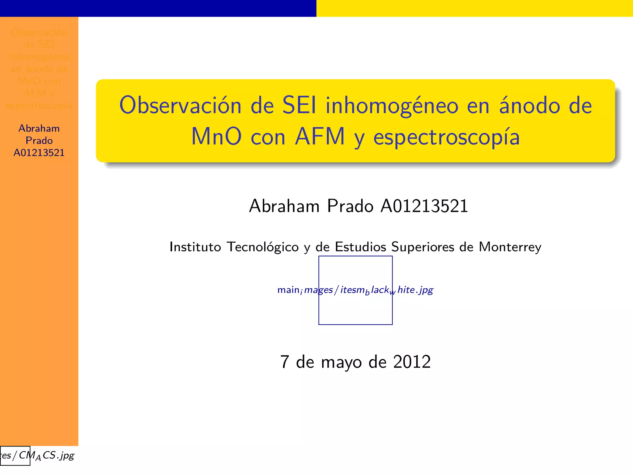 El documento describe la observación de una capa de interfase electrodo-electrolito (SEI) inhomogénea en un ánodo de MnO utilizando microscopía de fuerza atómica (AFM) y espectroscopía. Se presentan perfiles de voltaje, curvas de deflexión y fuerza, histogramas y tablas de grosor de SEI, y se aplican modelos para determinar el módulo de Young y grosor de SEI.