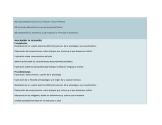 Este documento presenta el plan de clase para el área de Filosofía en el cuarto periodo. Cubrirá temas como las ciencias a partir de la psicología, la filosofía antropológica y el origen de la especie humana, las características del arte y la experiencia estética, y los pensadores que trabajan la relación entre lenguaje y mundo. Incluye competencias, indicadores de desempeño, tiempo asignado a cada contenido y actividades, y una apreciación del desempeño de tres grupos.
