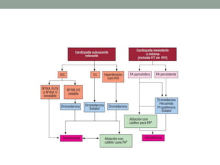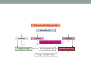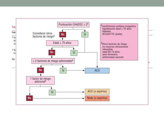 La fibrilación auricular es la arritmia cardiaca sostenida más frecuente, afectando al 1-2% de la población general y aumentando su prevalencia con la edad. Representa un factor de riesgo importante para el accidente cerebrovascular y empeora el pronóstico de otras enfermedades cardiovasculares. Su manejo incluye la prevención de tromboembolismos, el control de la frecuencia cardiaca y la corrección del ritmo mediante fármacos, ablación o cardioversión.