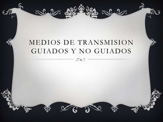Este documento describe los medios de transmisión guiados y no guiados. Los medios guiados transmiten información a través de cables de extremo a extremo, mientras que los no guiados usan antenas inalámbricas. Los guiados tienen mayor velocidad y alcance, pero son más caros de instalar y más difíciles de reparar si se dañan. Los no guiados son más fáciles de instalar pero tienen menor cobertura y son más vulnerables a interferencias.