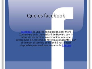 Facebook comenzó como una red social creada por Mark Zuckerberg para facilitar la comunicación entre estudiantes de la universidad de Harvard, pero luego se expandió para que cualquier persona con acceso a Internet pueda unirse. Los usuarios crean un perfil y agregan a sus contactos de correo electrónico como amigos en Facebook después de que estos confirmen la solicitud. Sin embargo, existe el peligro de compartir demasiada información personal en línea.