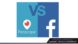 El documento compara Facebook Live y Periscope, destacando que ambas plataformas permiten transmisiones de video en vivo, facilitando la comunicación directa y personalizada. Periscope, lanzada en 2015, ha tenido un crecimiento rápido y se utiliza en campañas exitosas, mientras que Facebook Live, con su gran base de usuarios, ofrece múltiples funciones para interactuar durante transmisiones. Ambas herramientas son valiosas para el marketing, eventos y la creación de contenido cercano a los consumidores.