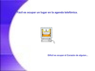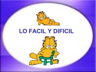El documento contrasta las cosas fáciles y difíciles en la vida, señalando que es fácil juzgar a otros o cometer errores pero más difícil reconocer los propios errores, curar las heridas causadas a otros, o pedir perdón. También indica que es fácil soñar o prometer cosas pero más complicado luchar por los sueños o cumplir las promesas, y que en general es más sencillo criticar que mejorarse a uno mismo.