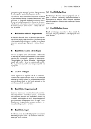 El documento describe los diferentes tipos de factibilidad que se consideran en un estudio de factibilidad para un proyecto. Estos incluyen la factibilidad económica, comercial, humana u operacional, técnica o tecnológica, ecológica, organizacional, legal, política y de tiempo. Cada tipo analiza los recursos disponibles y requeridos para llevar a cabo con éxito el proyecto propuesto.