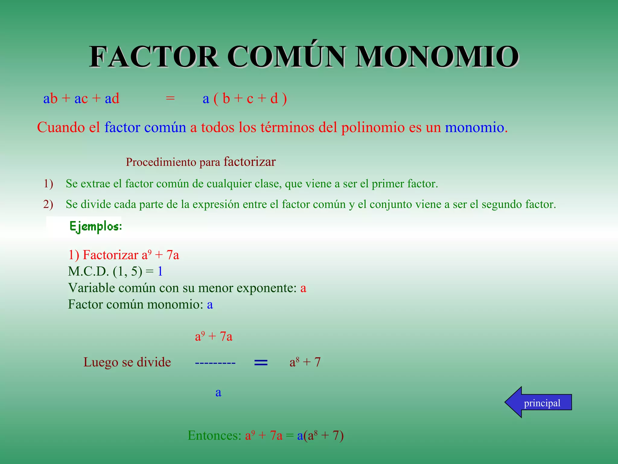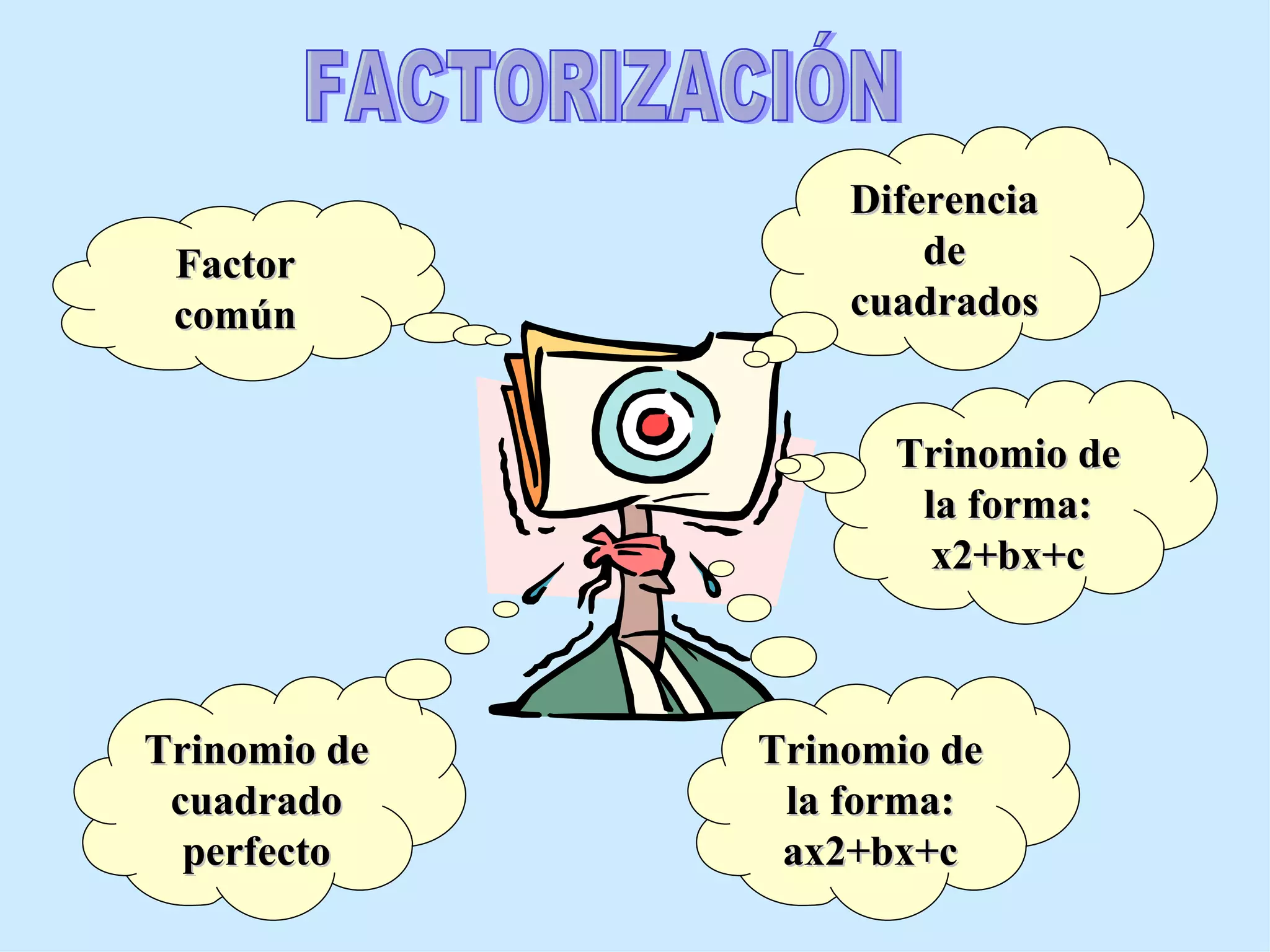 El documento resume diferentes métodos para factorizar polinomios. Explica cómo factorizar cuando el factor común es un monomio o polinomio, así como trinomios de la forma ax^2 + bx + c y diferencias de cuadrados. Proporciona ejemplos para ilustrar cada método de factorización.
