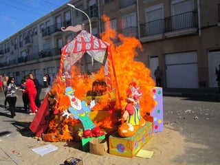 El documento presenta las diferentes etapas de preparación y celebración de una falla, incluyendo la instalación de castillos hinchables y la llegada de los falleros, la elección de la Fallera Mayor, el disfrute de la fiesta para que no pare, la quema del ninot indultado hecho por estudiantes y la preparación anticipada para la falla del próximo año.