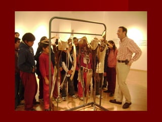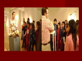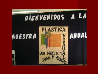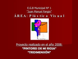Este documento describe un proyecto de arte realizado en 2008 en la Escuela Municipal No 1 "Juan Manuel Fangio" en La Rioja, Argentina. El proyecto se centró en pintores riojanos como Mario Aciar, Carlos Cid, Luis Blanchard y Osman Páez. Los estudiantes aprendieron sobre estas obras de arte a través de visitas y reproducciones. El objetivo era conocer y valorar diferentes producciones artísticas riojanas y desarrollar habilidades en bidimensional y tridimensional. Los estudiantes también visitaron exposiciones y