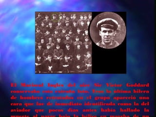 Este documento presenta varias fotografías que parecen mostrar fantasmas u otras entidades. Incluye imágenes de una cara en una foto antigua de un grupo, una niña transparente en una foto de un incendio, una figura observando desde un cuadro en una foto familiar antigua, y una entidad abrazando a una niña en una foto de 1979. También presenta fotos de figuras extrañas en paisajes como árboles y cuevas que parecen ser fantasmas. El documento sugiere que estas imágenes capturan presencias sobren