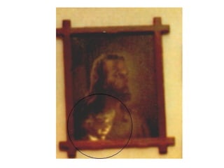 Este documento presenta varias fotografías que se afirma capturan fantasmas u otros fenómenos paranormales. Incluye una foto de la madre de alguien detrás del conductor de un automóvil después de su muerte, una foto de una figura recostada en un sofá después de apagar las luces en una fiesta de cumpleaños, una foto histórica de un fantasma femenino en una casa ancestral y fotos de un niño desconocido en un espejo y una mujer atravesando una mesa en un restaurante.