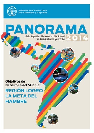 Este documento presenta el Panorama 2014 de la Seguridad Alimentaria y Nutricional en América Latina y el Caribe. En menos de 3 oraciones: La región logró cumplir la meta 1C de los Objetivos de Desarrollo del Milenio al reducir a menos de la mitad la proporción de personas subalimentadas desde 1990. El documento analiza el estado de la seguridad alimentaria y nutricional en la región, incluyendo factores como disponibilidad, acceso y utilización de alimentos, así como las políticas implementadas en el período