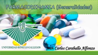 Este documento describe los conceptos fundamentales de farmacología, incluyendo los mecanismos de acción de los fármacos, los tipos de receptores, y la interacción entre fármacos y receptores. Explica que los fármacos interactúan con los receptores en el organismo para modificar funciones bioquímicas y fisiológicas. También clasifica los fármacos según su unión a los receptores como agonistas, antagonistas o según su efecto como drogas electrofarmacodinámicas o quimiofarmacodiná