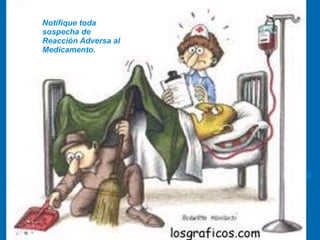 Este documento trata sobre la importancia de la farmacovigilancia. Resalta que la farmacovigilancia implica detectar, evaluar y prevenir eventos adversos a medicamentos con el fin de establecer el perfil de seguridad de los fármacos. Todos los profesionales de la salud, pacientes y autoridades deben participar en actividades de farmacovigilancia y notificar cualquier sospecha de reacción adversa a medicamentos.