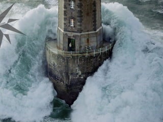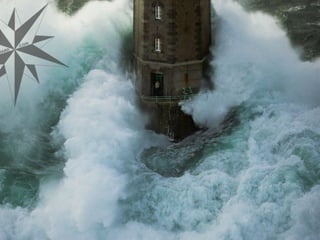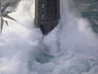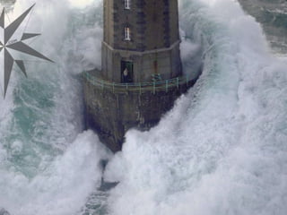 Este documento describe el Faro de la Jument en Ouessant, Bretaña Francesa. Mientras el paisaje suele ser agradable y tranquilo, cuando llega el temporal, la tormenta desde dentro del faro es simplemente impresionante. El documento expresa la admiración por la labor de las personas que trabajan en el faro durante las tormentas.