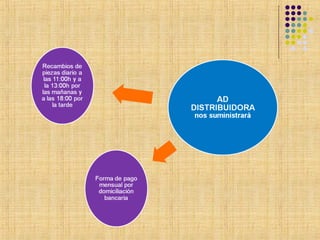 Este documento presenta varias ideas de negocio propuestas y analiza cada una. Se propone un taller mecánico de autoservicio que permita a los clientes realizar tareas básicas de mantenimiento de sus vehículos con la ayuda de mecánicos. Se descartan otras ideas como una guardería, óptica de monturas usadas, empresa de trueque y pizzería a domicilio debido a la alta competencia u otros factores. Finalmente, se decide abrir un taller de autoservicio en Montijo por ser un concepto innovador que puede atraer