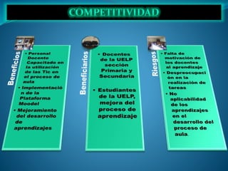 El documento presenta una propuesta para implementar programas de capacitación para docentes de la Unidad Educativa La Providencia en Quito, Ecuador. El objetivo es capacitar a los docentes en el uso de TIC para mejorar los procesos de enseñanza y aprendizaje. La propuesta incluye desarrollar la capacitación de manera virtual a través de la plataforma Moodle con diferentes módulos sobre programas informáticos y creación de entornos virtuales de aprendizaje.